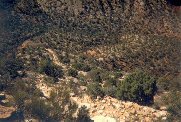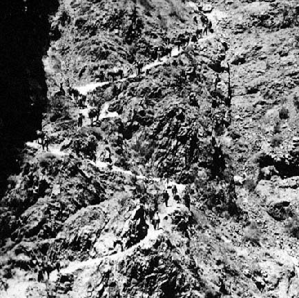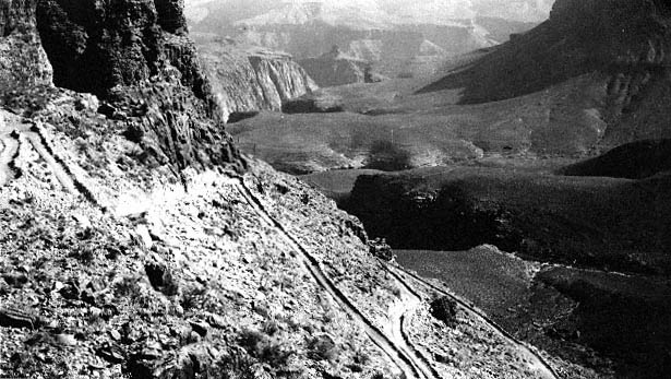 | Yaki Trail- the switchbacks in the distance, ca. 1926 - Northern Arizona Univ./Grand Canyon Pioneers Society |